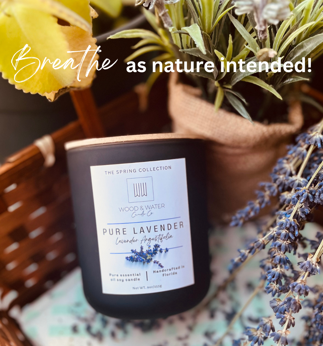 We offer an all natural plant-based candle, candle crafted solely with pure essential oils, and 100% soy wax.